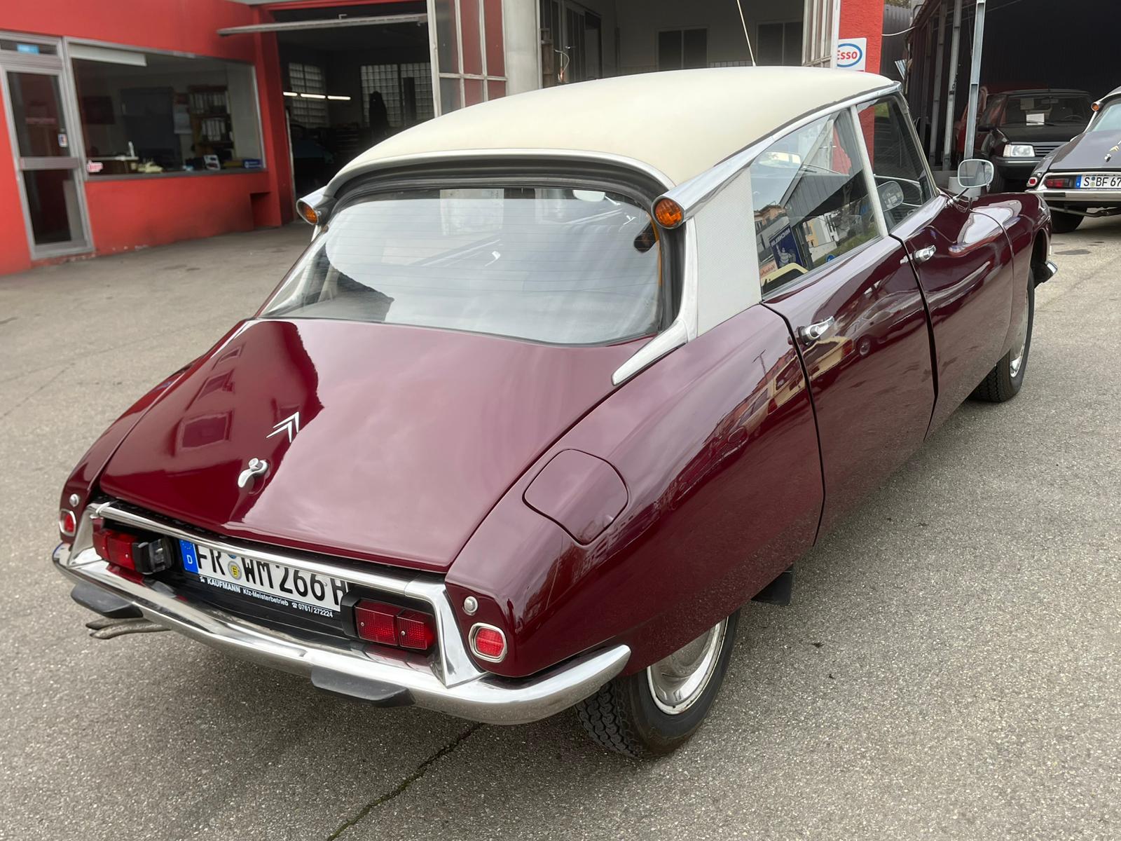 4-Ganggetriebe. Diese DS befindet sich in einem sehr schönen Zustand. Das Chassis/Bodengruppe ist überdurchschnittlich gut. Und so fährt sie auch, nur der 2.Gang „kratzt“ leicht, was die letzte Besitzerin die letzten 10 Jahre nicht gestört hat. Man kann wirklich gut damit leben. Ansonsten wurde die Göttin immer gut und regelmäßig in einer DS-Werkstatt gewartet was auch durch Rechnungen belegbar ist. 2019/2020 wurde das Auto neu lackiert. Die Leder-Innenausstattung wurde vor ca. 11 Jahren erneuert. Vor ca. 1.500 KM wurde ein Wartungsdienst durchgeführt und aktuell die hinteren Federkugeln erneuert. TÜV bei Kauf neu.
